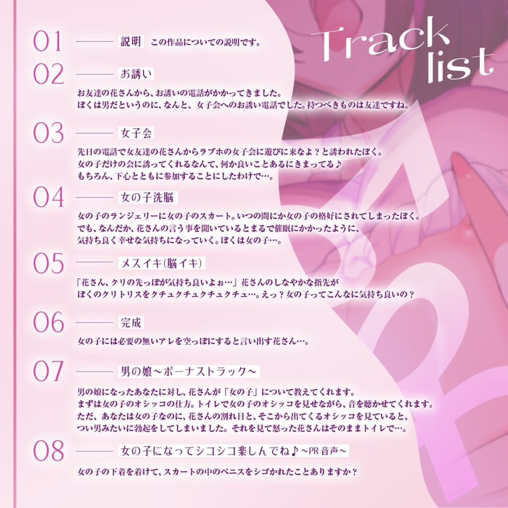 今すぐ読む!完全版を今すぐ読む!【洗脳×没入×メス堕ち】男を『男の娘』へと洗脳していく痴女音声〜究極没入イマーシブ音声作品〜【イマーシブサウンド】品番: d_465587発売日: 2024年10月31日ボリューム: 8本 (約105分)+αジャンル: SM、放尿・お漏らし、... -